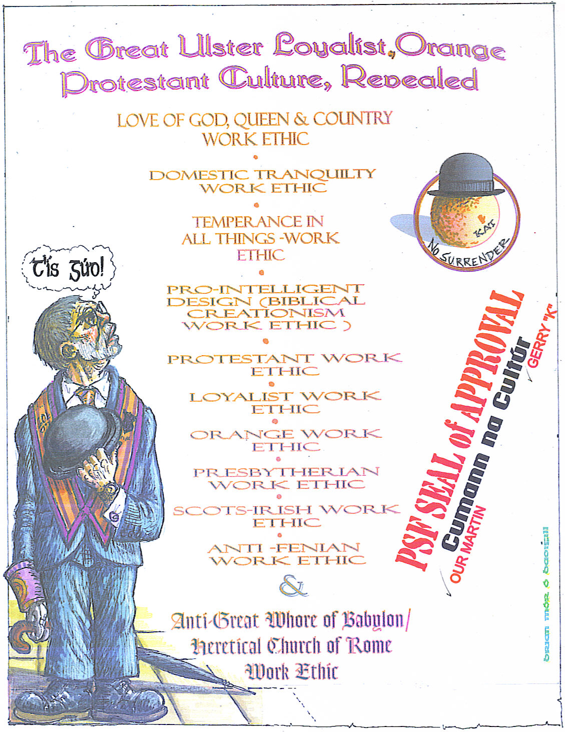 In relation to the 'Protestant work ethic' Brian Mor has it on his cartoon!