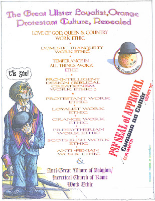 A well rehearsed statement for two occasions. Firstly it's often used to establish Republican credentials as per Catholic, Protestant and Dissenter. In this case it provides a thread bare defence against an accusation of bigotry and being anti - Republican. No Protestants that I know of refer to themselves as 'Orange' or 'Black' in regard to membership of the Orange Order or the Royal Black Perceptory. Membership of either organisation is spoken of in these terms, "I am in the Orange" or "I am in the Black". African Americans often refer to themselves as 'niggers' however when whites use this term it is rightly viewed as racist and bigoted. Likewise your use of the term 'Black' is employed to denote something malignant about Protestants.