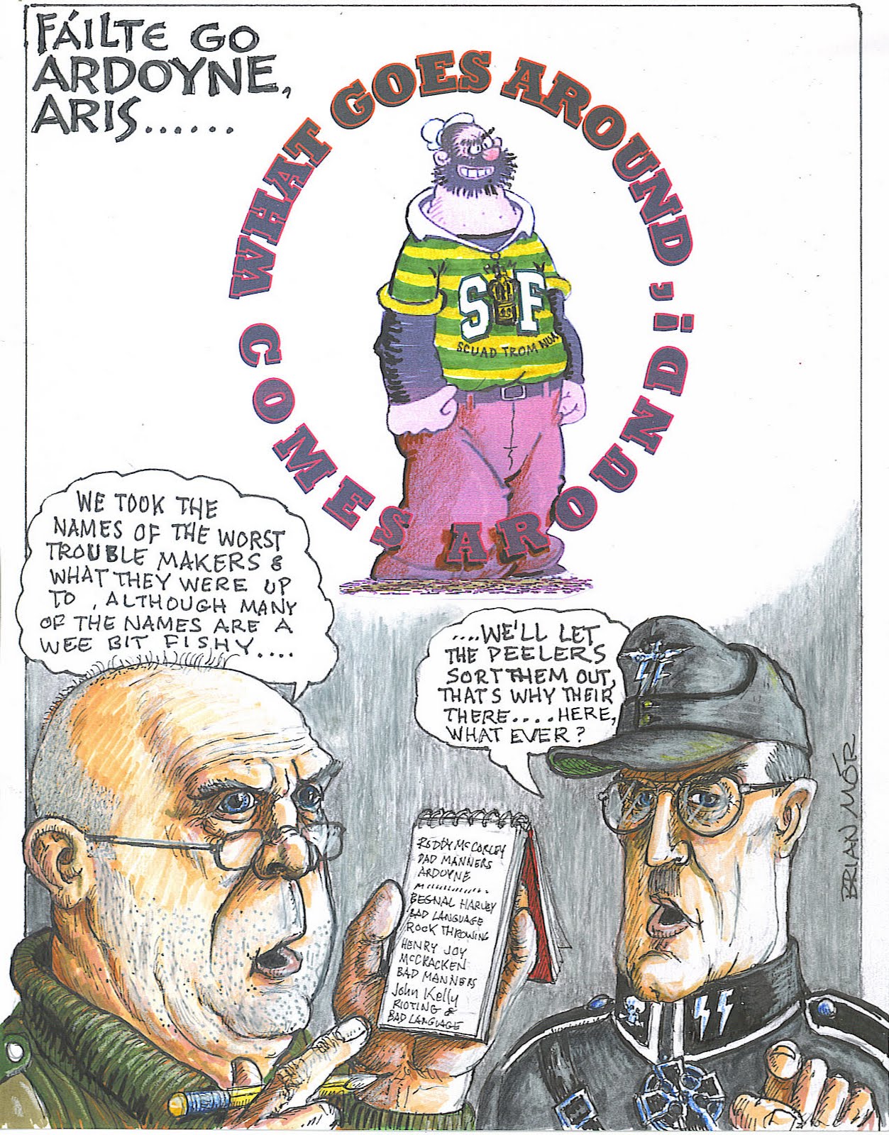 So to the third group, who feel that the only thing to do with ‘illegitimate bastard Siamese twins’ is to kill them. Their logic in justifying their actions differs little, or not at all, from those resigned to the hopelessness of armed struggle against an infinitely superior military opponent. But we can pass judgement on their actions now on the basis of the democratic laws we have, be they from Dublin, by way of Strasbourg, from Westminster or from Stormont.