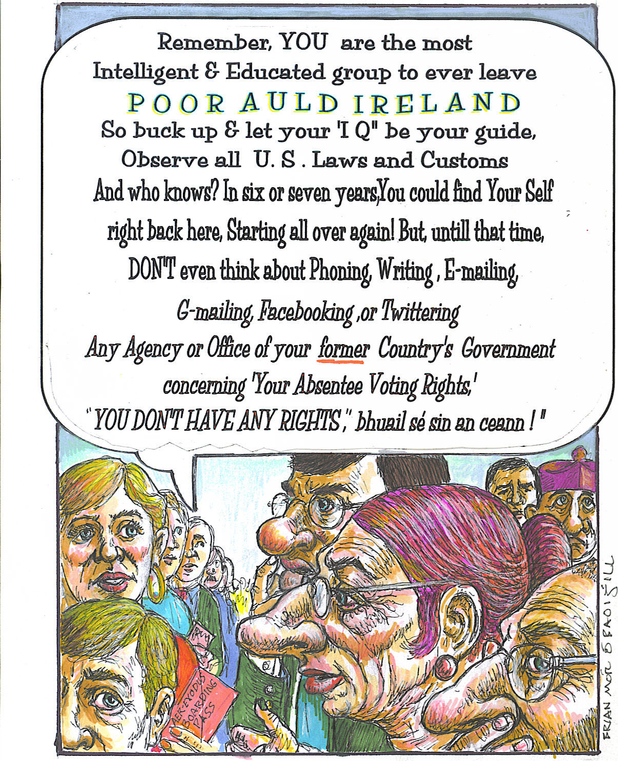 To be frank AM, I live in Armagh and I don't have voting rights in the Republic on major issues such as Presidency or Europe, time to extend the franchise to include our absent brothers/sisters within as well as outside Ireland. Without them the now dead tiger would never have been.