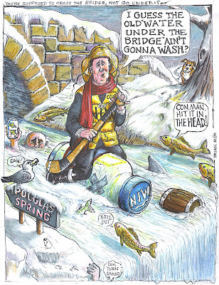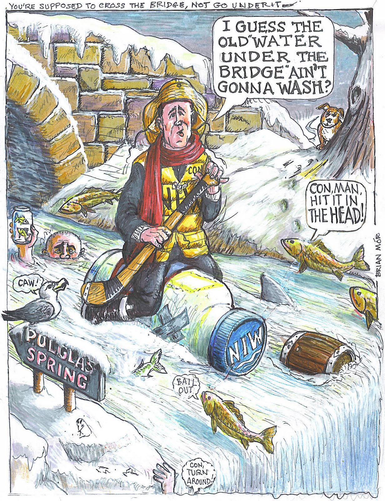 Con, man has been cleared of any wrong doing during the water debacle. Larry Mc Kenzie likened those carrying out the investigation to Dracula taking charge of a blood bath. Bail out! It would be kinder if someone just pulled the plug.