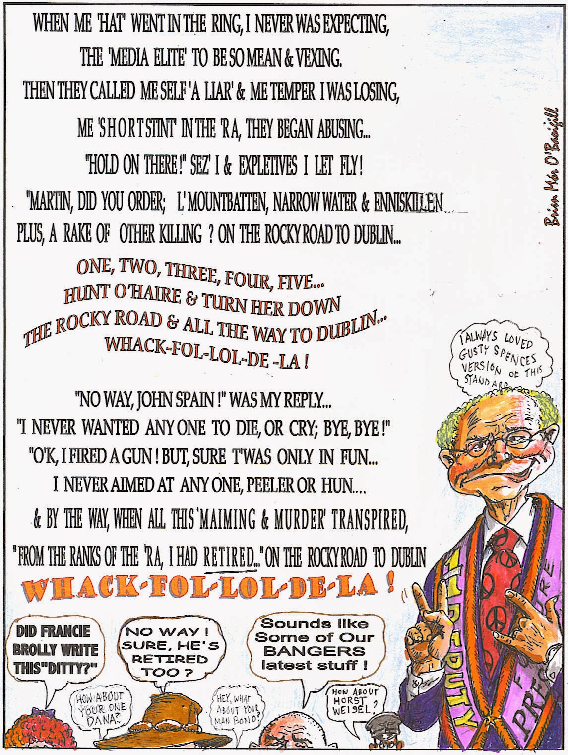 In the wake of the decision by Martin McGuinness to enter the race for the Irish Presidency it is interesting to note a change of inflexion in some areas of media discourse. The Irish Mail on Sunday perhaps provided the best example last week in its definition of the decades-long armed Irish conflict as ‘our own most recent war.’ It was not committed to print in an unguarded moment; the term ‘war’ dosed the entire editorial. This seems to be a purpose built innovation, constructed solely for the ease with which it will permit allegations of war criminality to be levelled against the Sinn Fein presidential candidate.