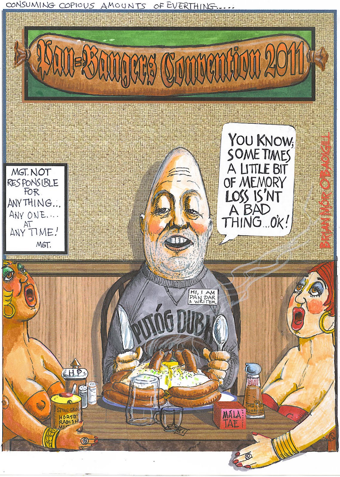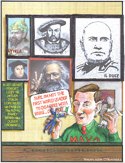 His cartoons were great; there was always something speaking out to us, even the cameo part characters he would often sketch into his work. Funny and cutting in equal measure, he could, with a few rapier-like thrusts of his brush both amplify and magnify the ridicule that he so heaped on the ridiculous. When Brian scarred you he did not do so without good cause. Nor was it a mark that could be worn proudly a la some Germanic nobleman fresh from a sword duel. More than a few reputations have never quite been the same since Brian made a couple of deft strokes with his sable hair. He had a profound dislike for the lying opportunist and found no small number of them in the ranks of Sinn Fein as it sought to abandon ship and send The Republic to the bottom of the sea, wholly indifferent to the fate of those who had walked her decks over the decades and were left to walk the plank.
