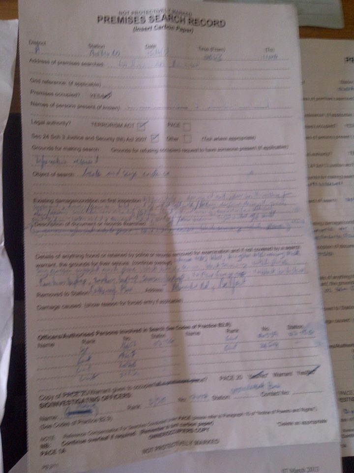 You can see by the photo’s just some of the Stop and Search Dockets, Search Warrants, Death Threat Notices, Cautions and Summons collected in the last year by this man and the future looks no different.