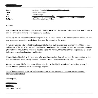 Blanketmen: An Untold Story of the H-block Hunger Strike, about the Democratic Unionist Party's unilateral decision to cancel the proposed Peace and Reconciliation Centre at the Long Kesh prison site. Thanks as always to our transcriber who rises to the occasion every time.