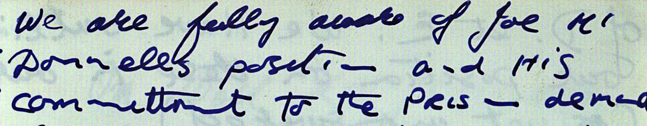 “…I don’t know if you’ve thought on this line, but I have been thinking that if we don’t pull this off and Joe dies then the RA are going to come under some bad stick from all quarters. Everyone is crying the place down that a settlement is there and those Commission chappies are convinced that they have breached Brit principles. Anyway we’ll sit tight and see what comes…”