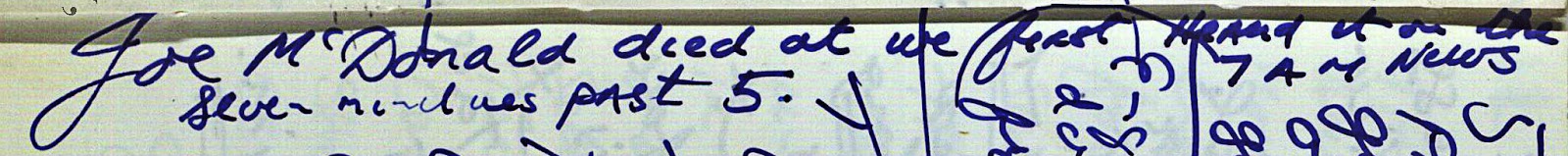 Word confirming his death was slow in getting out, and somewhat confused. Duddy's diary puts Joe's death 17 minutes later, at 5:07, though it was not known he had died until the morning news broadcast; the Bobby Sands Trust as well as various other websites including the Sinn Fein bookshop, list his death at 5:11am; Padraig O'Malley writes that Joe died at 5:40am.